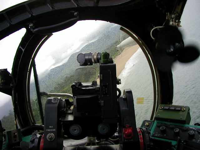 Banking over a rocky bit of coast line, and screaming