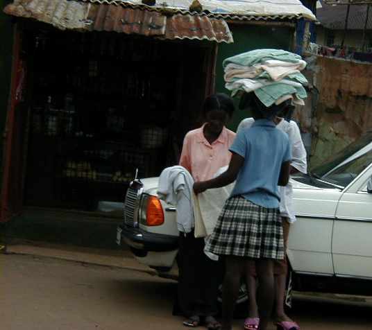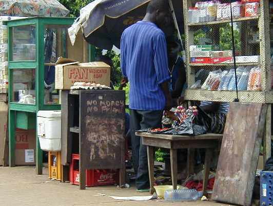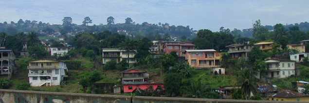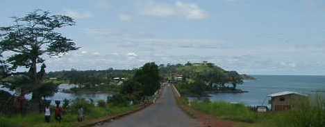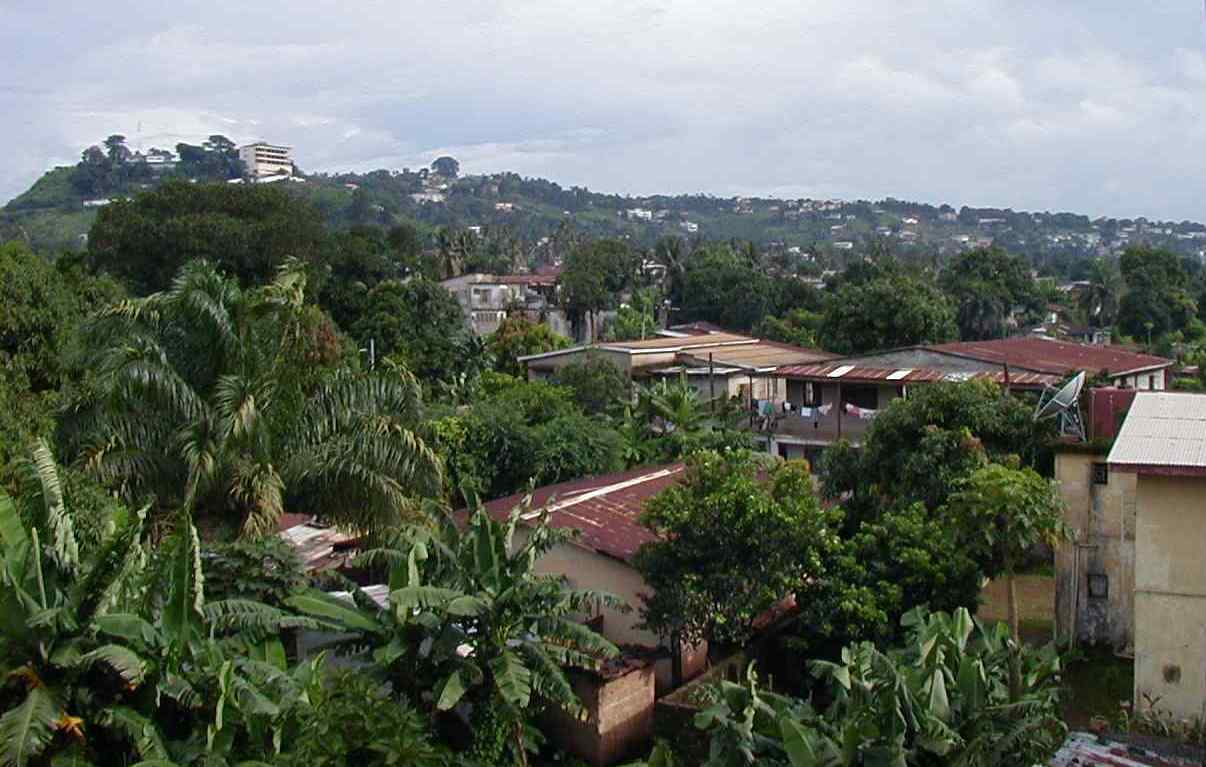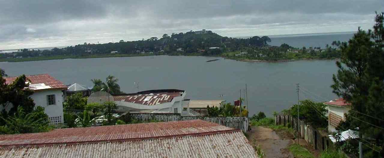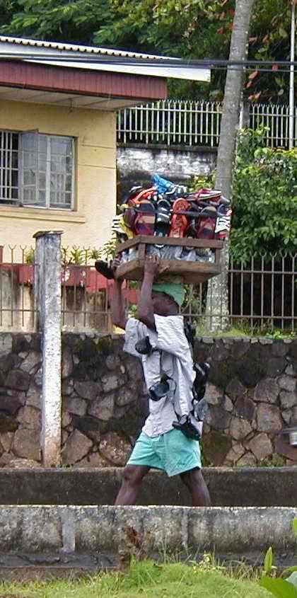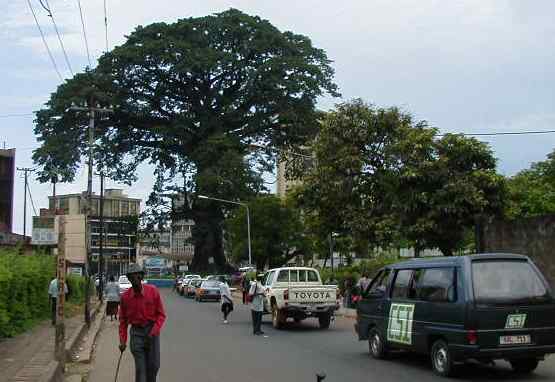 2000.  A view towards the giant Cotton Tree in the center of town.